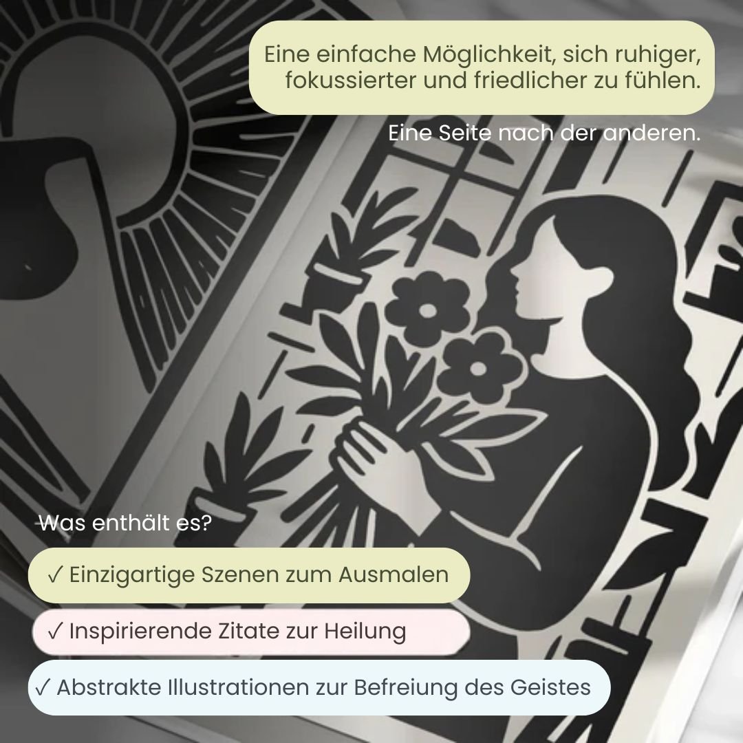 Das ist mehr als nur ein Ausmalbuch – es ist ein begleiteter Raum, um zur Ruhe zu kommen, nachzudenken und kreativ zu sein.