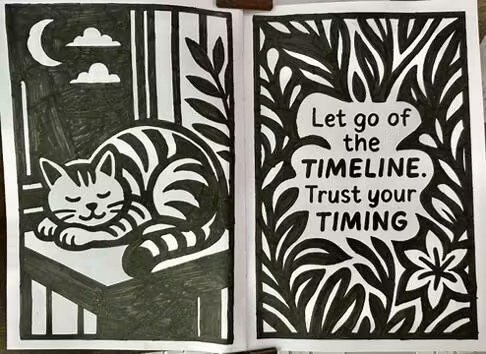 Lass die Zeichnungen Zeile für Zeile beim Ausmalen entstehen. Kein Druck, nur Achtsamkeit.