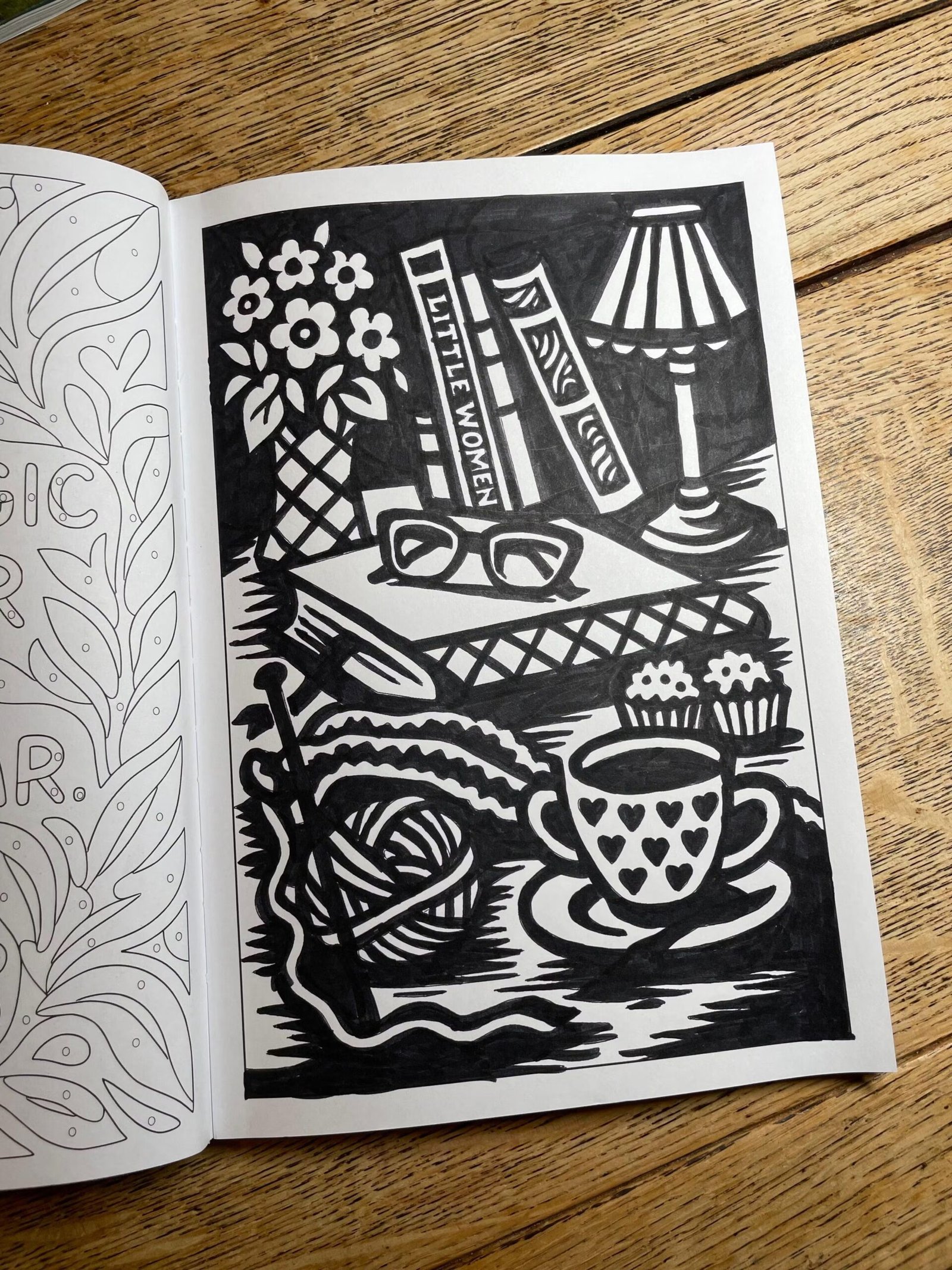 Ich LIEBE es! Seit ich es habe, mache ich zwei Seiten pro Tag – ich bin total besessen. Kopfhörer auf, ausmalen und der Kopf wird komplett leer. Es ist sehr selten, dass ich etwas finde, das meinen inneren Monolog ausschaltet – aber dieses Buch ist das ultimative Achtsamkeitstool. Großartig ist auch, dass ich nicht über Farben nachdenken muss.